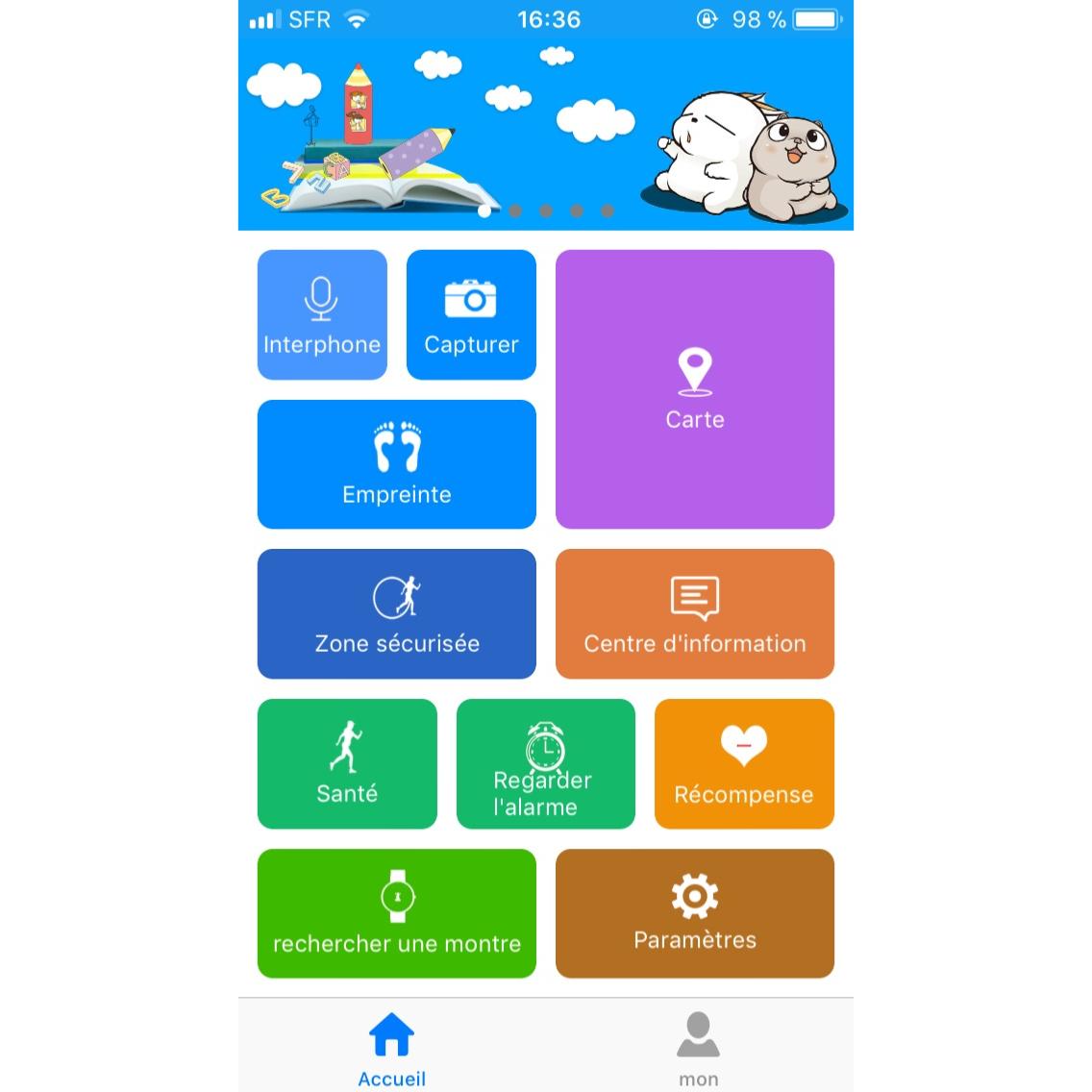 Les smartphones de contrôle reçoivent une alerte: si la montre détecte une chute, si la montre sort de la zone de sécurité (si définie), si la batterie est faible.